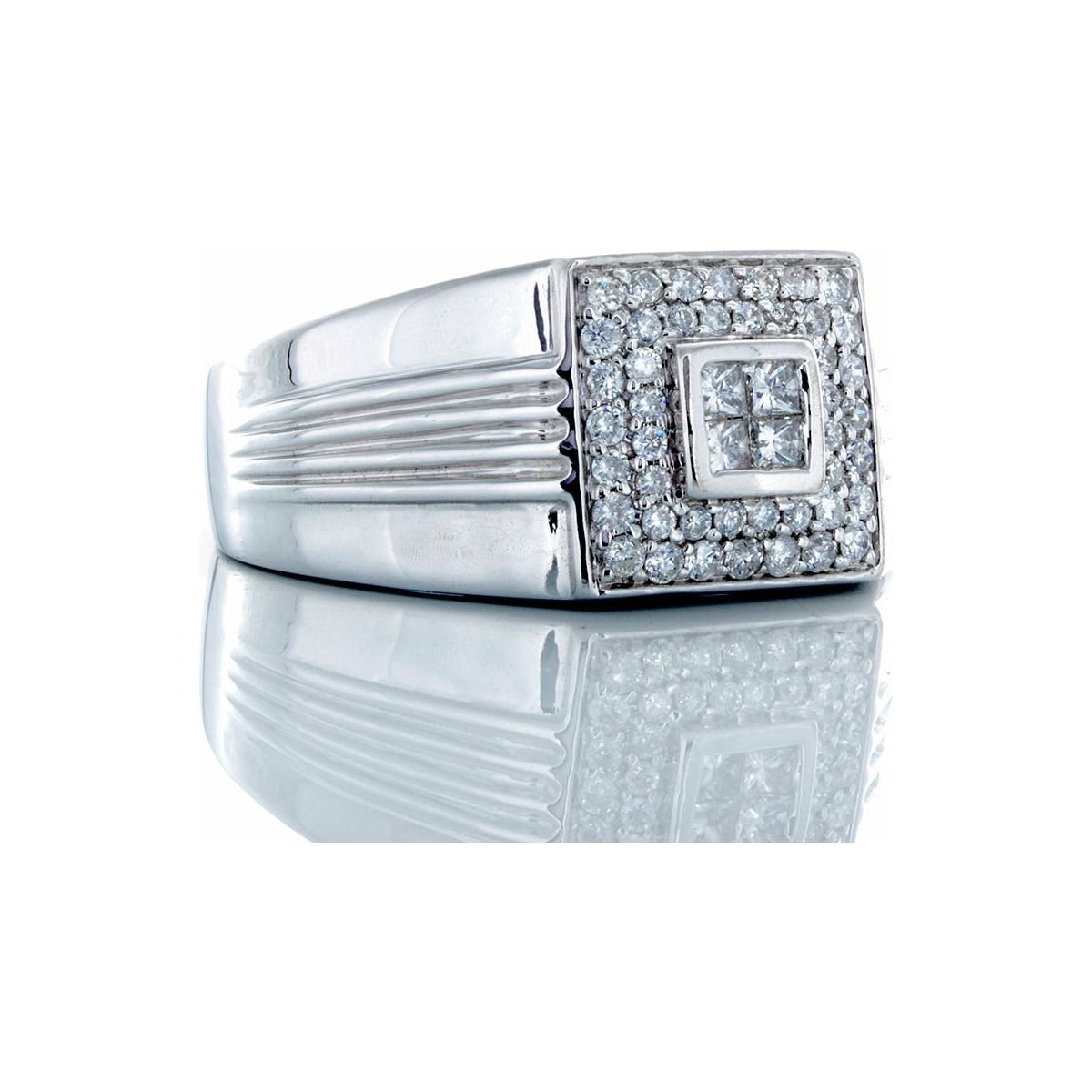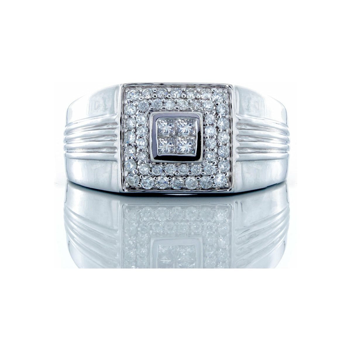 0.50ctw Princess Quad Center, Double Halo Grooved Shoulders 14k White Gold