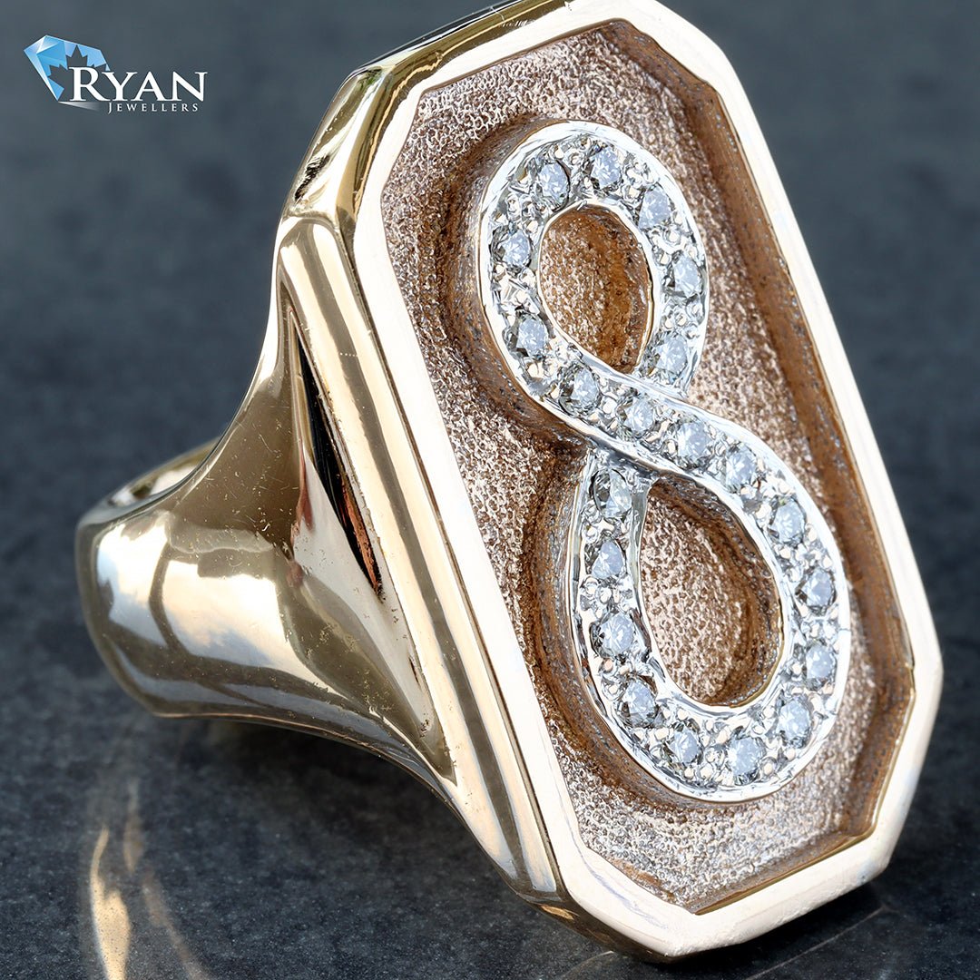 Large Rectangle Lucky Number 8 Earth Mined Diamond Ring.
