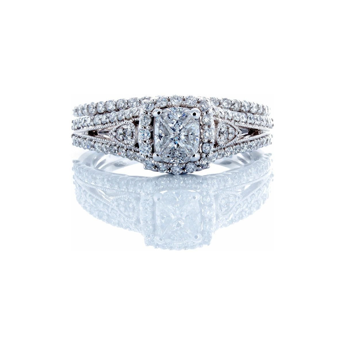 Be the first to review “0.96CTW Natural Invisible Quad Center with Split Vintage Shoulders, Bridal Set 14k White Gold”