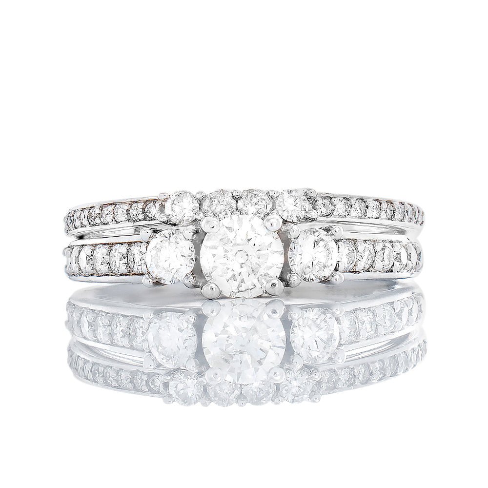 1.00CTW Diamond Three Stone Pave Sides Bridal Set