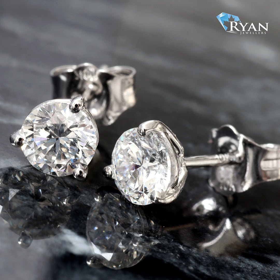 Lab Created Round Brilliant Cut Lab Created Diamonds Set In a Three Prong Martini Setting with Push Backings For Closure.