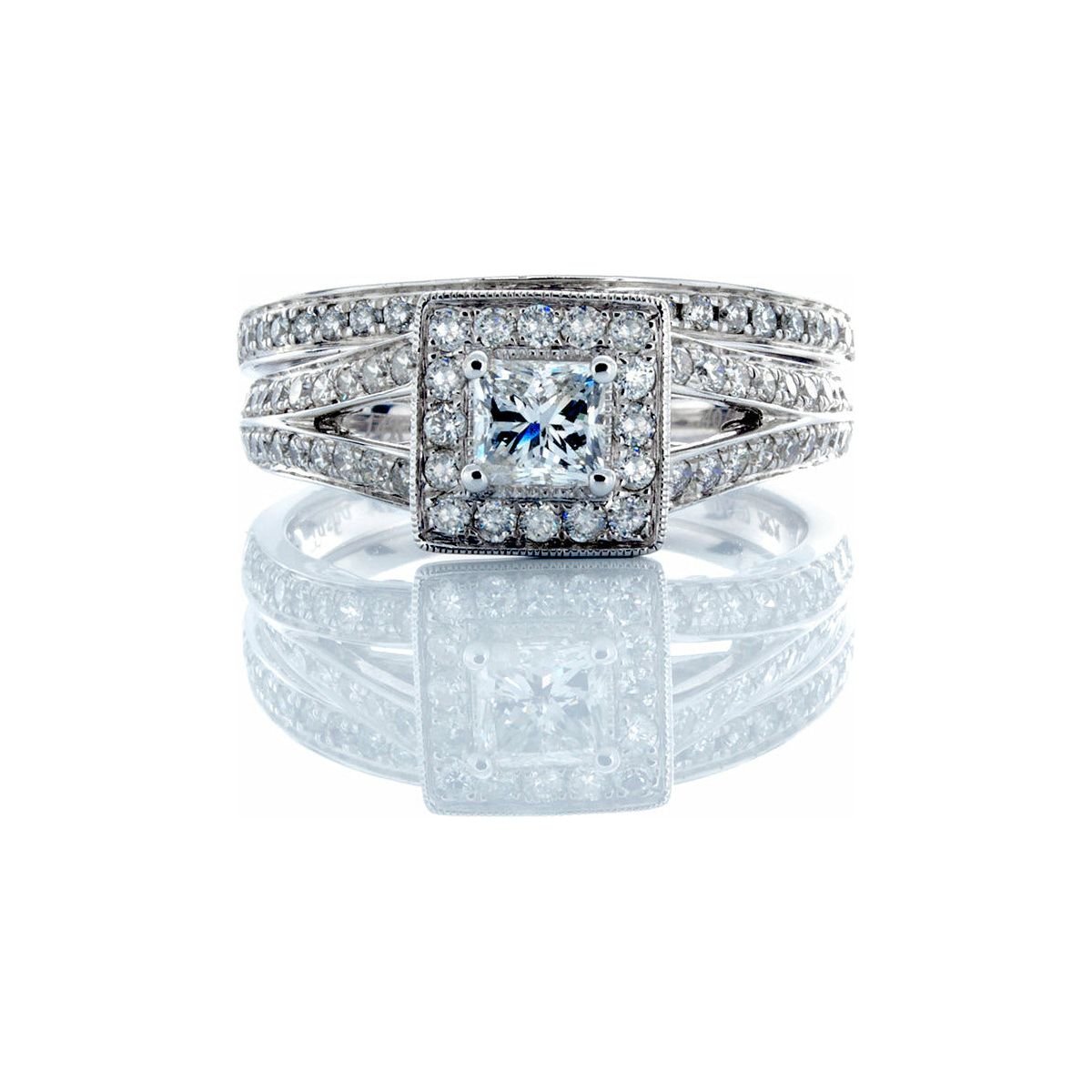 Be the first to review “1.00CTW Natural Princess Solitaire With Square Halo and Split Pave Shoulders with Matching Wedding Band 14k White Gold”
