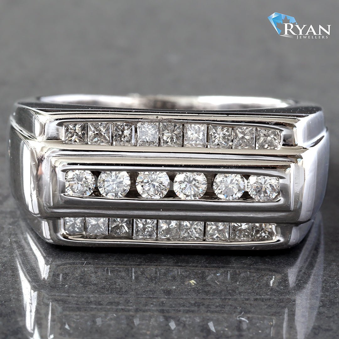 1.00ctw Princess & Round Cut Three Row Diamond Ring