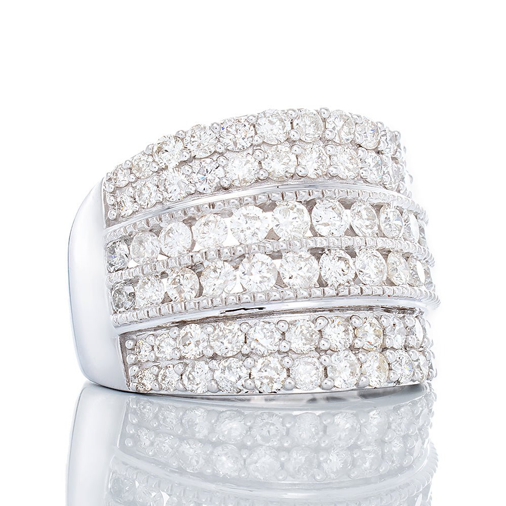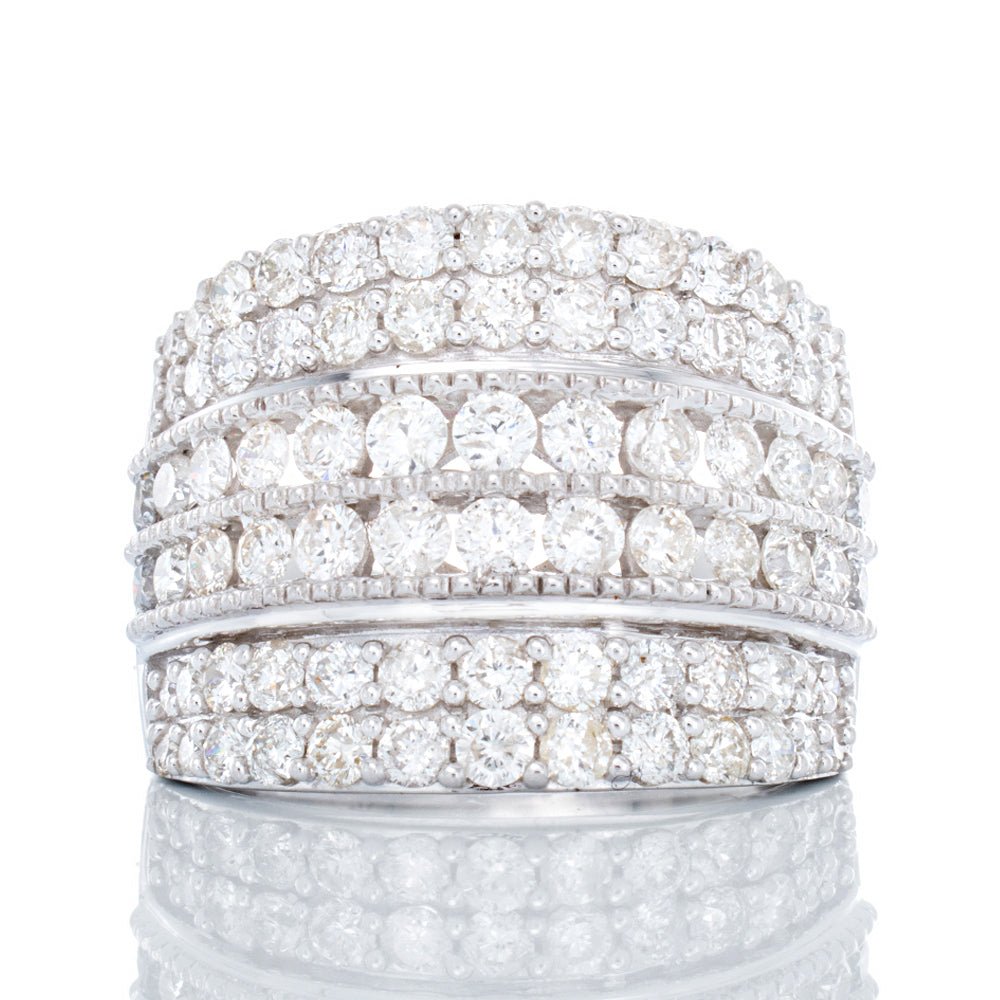 2.00ctw Wide Six Row Diamond Band with Beaded Edge Accents 10k Whtie Gold
