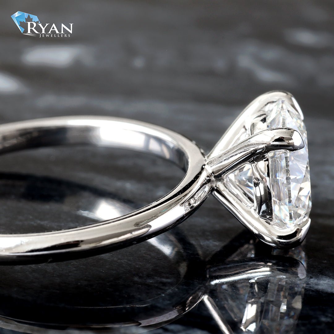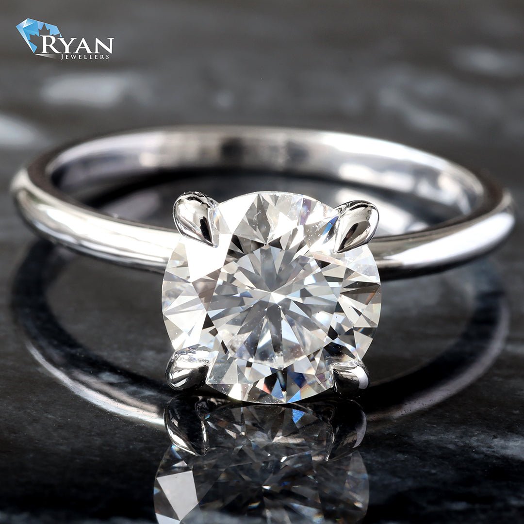 Lab Created Round Diamond Center totaling 2.04ct with a classic high polished White gold mount and open basket.