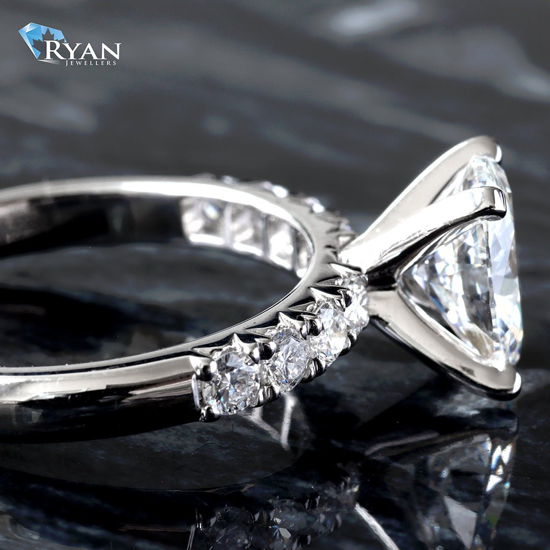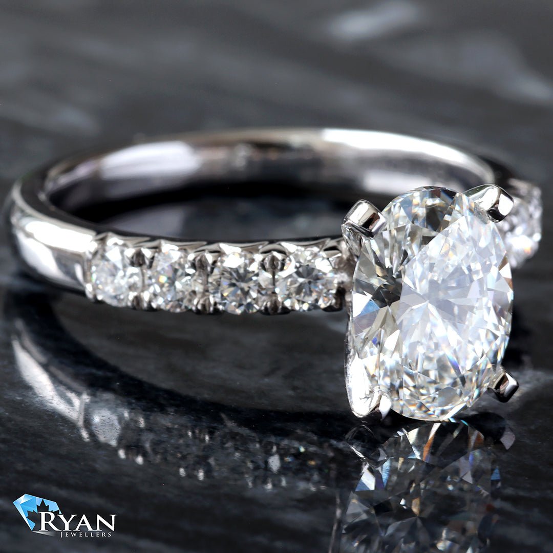 - Lab Created Oval Cut Solitaire Center: 1.57CT