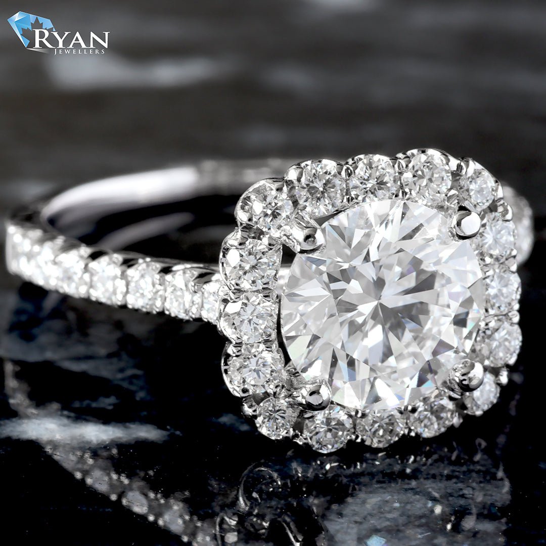 1.71ct Round brilliant cut lab created diamond set into one cushion halo diamond mount totalling 0.70ctw