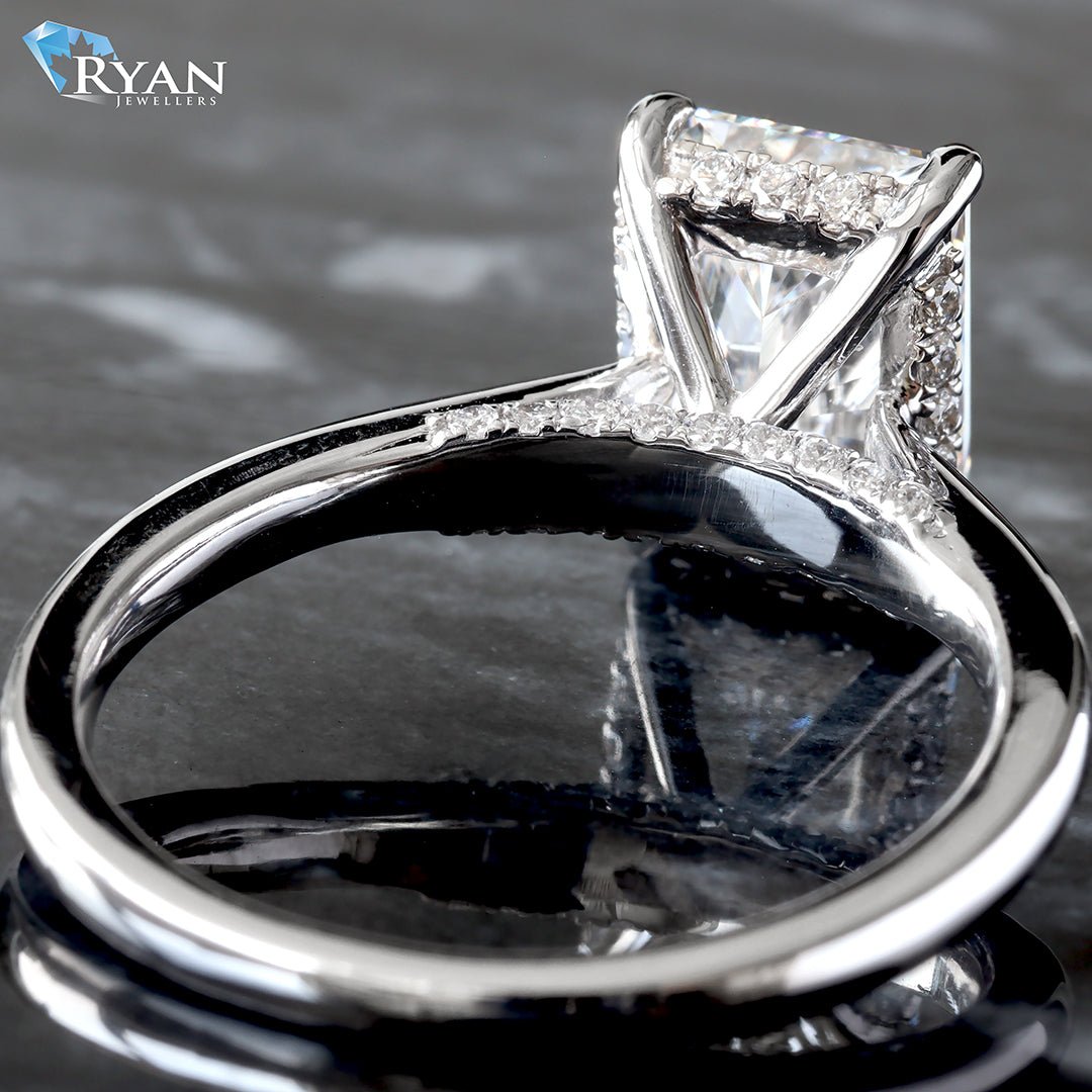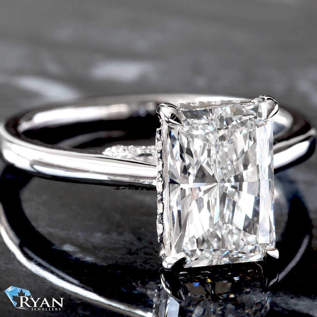 2.72ctw Radiant Solitaire with Hidden Halo and Diamond Bridge Ring