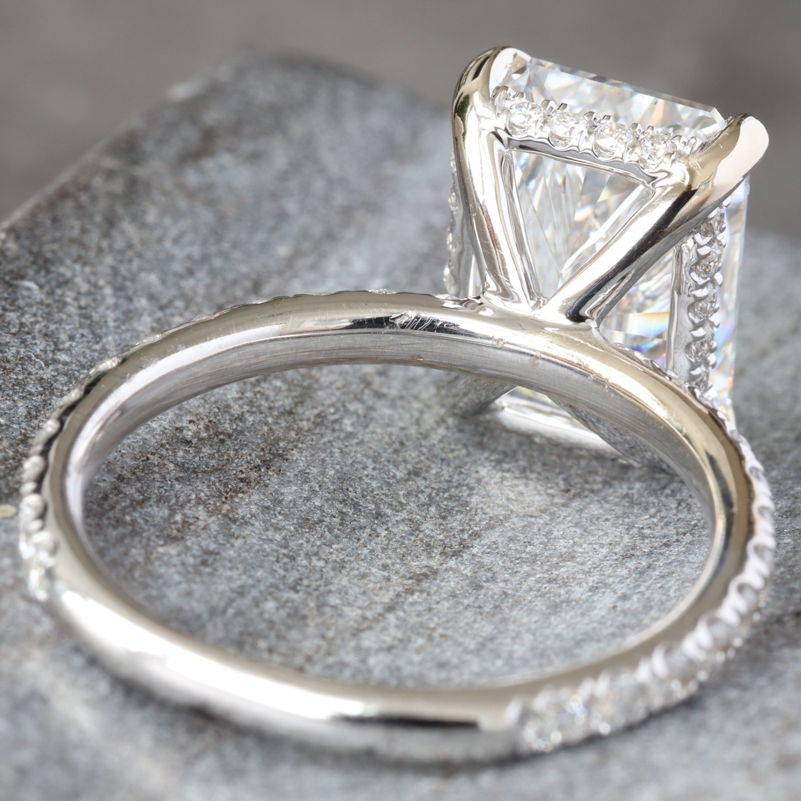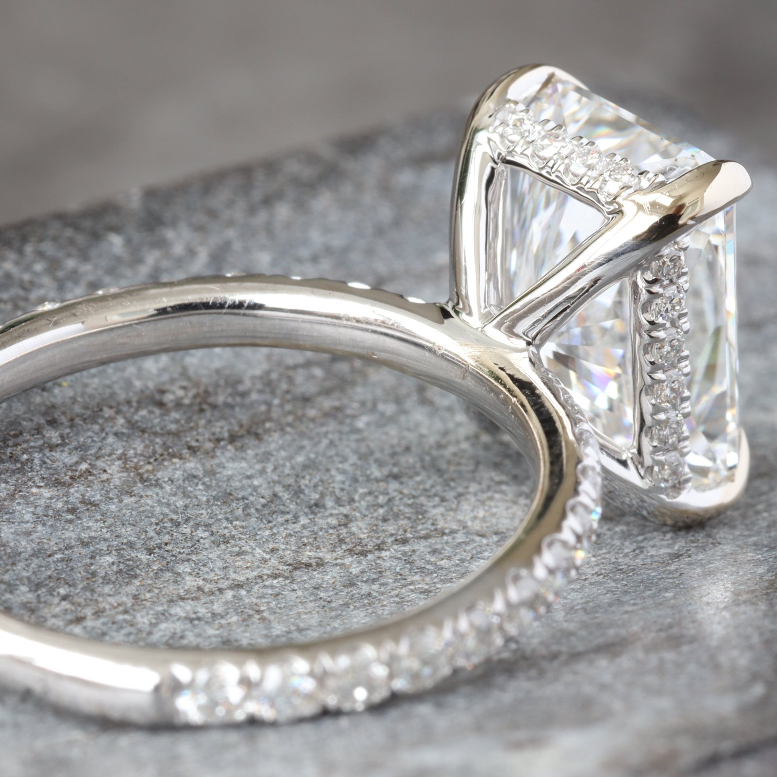 - Lab Created Radiant Cut Diamond Center: 3.83ct