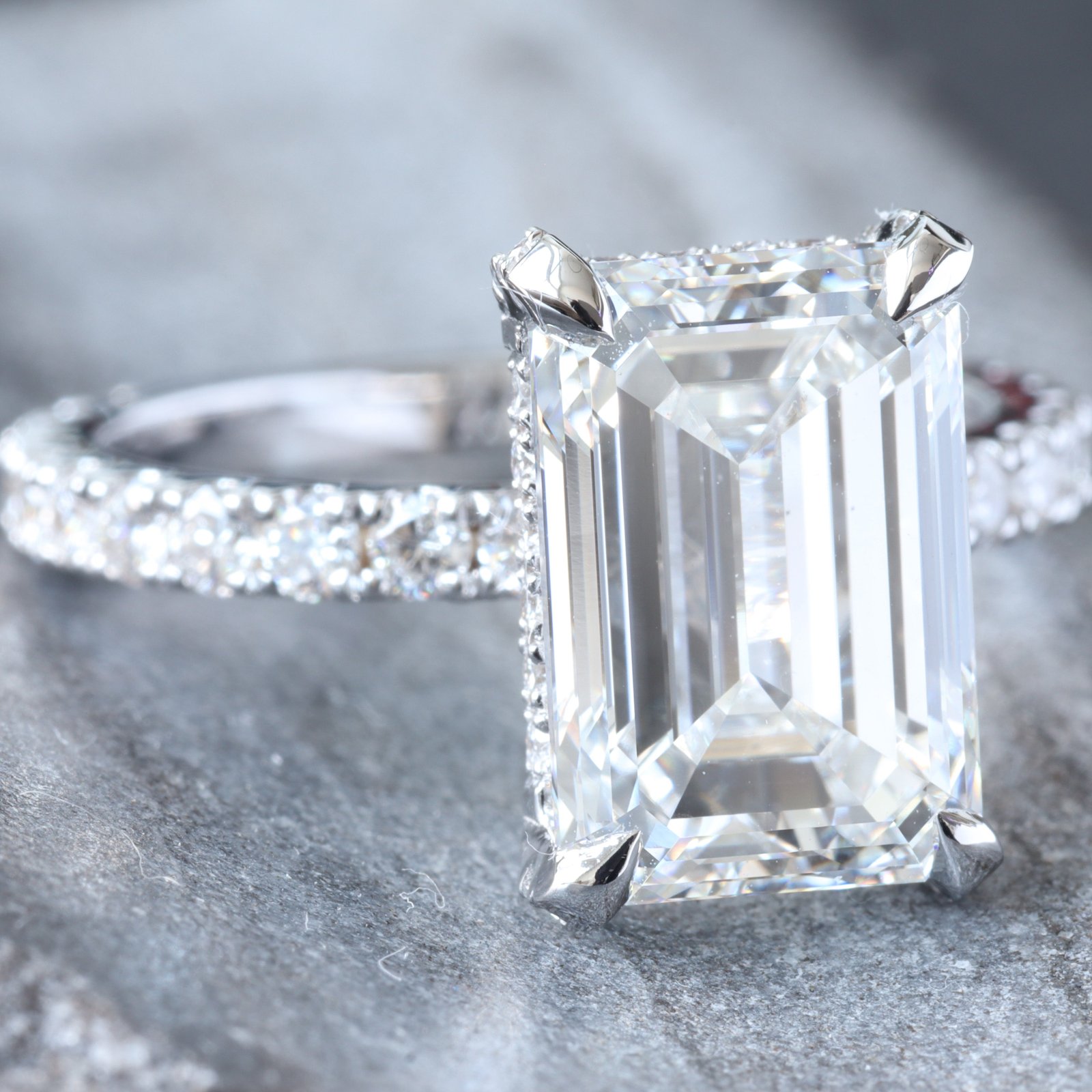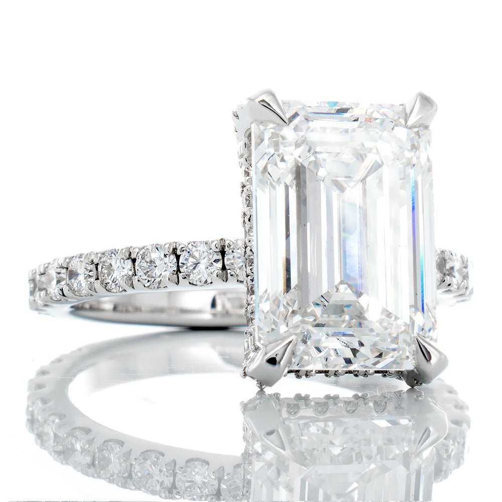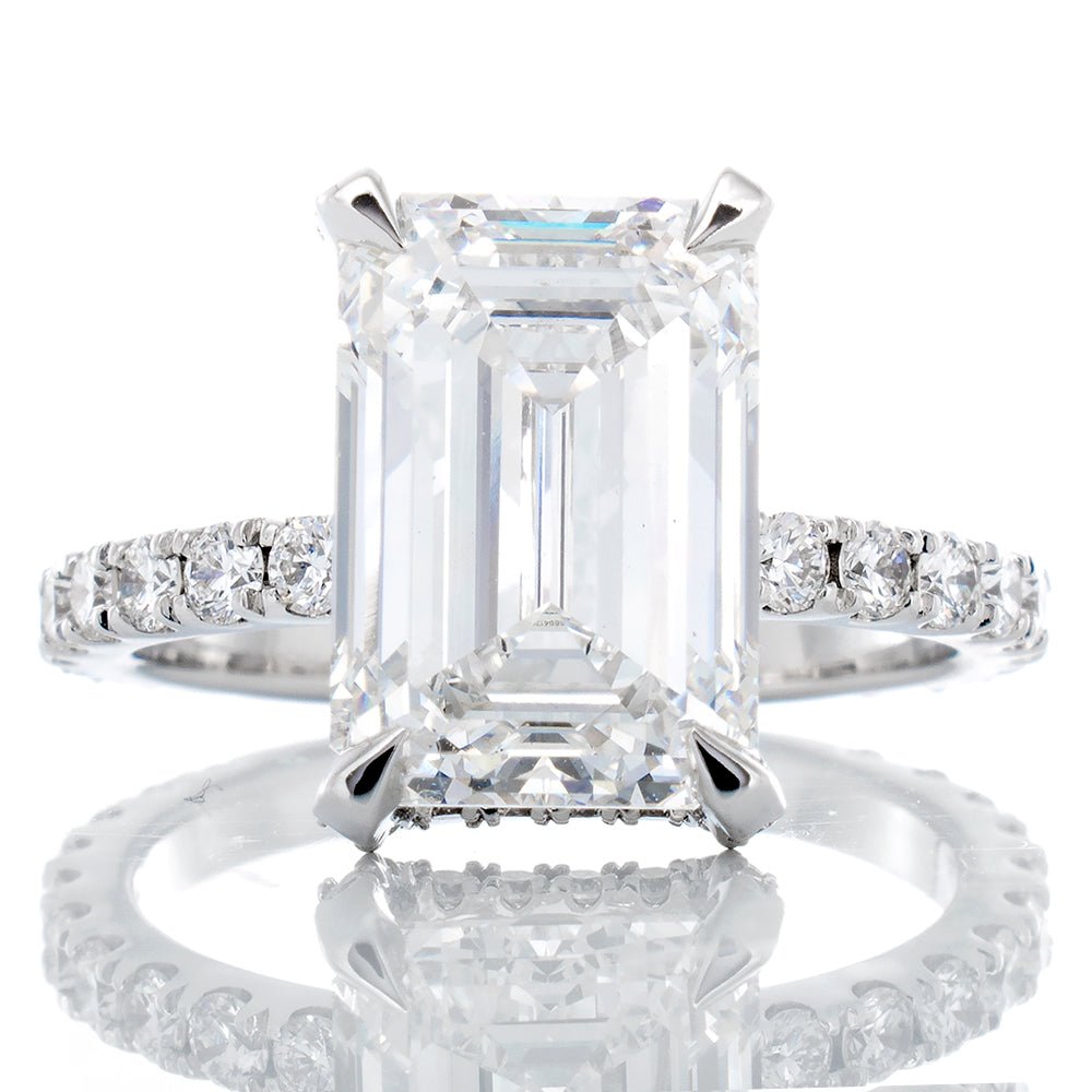 - Lab Created Emerald Cut Center Diamond Weight: 5.05 CT