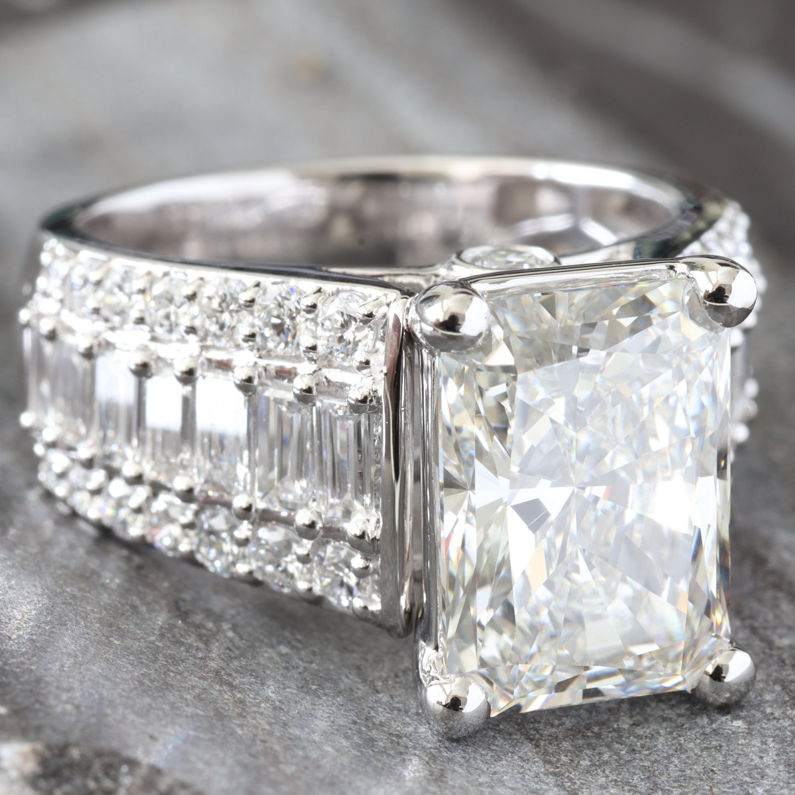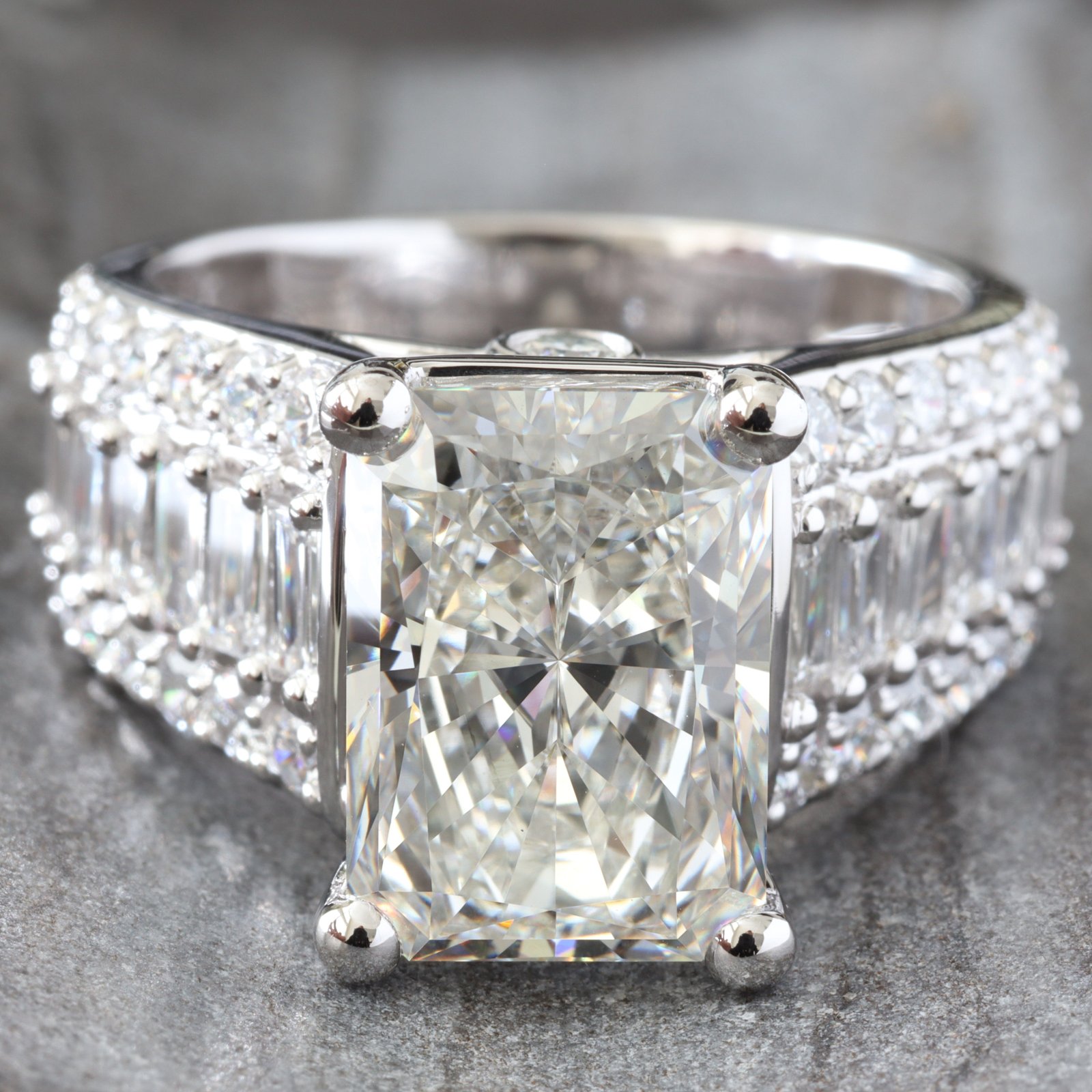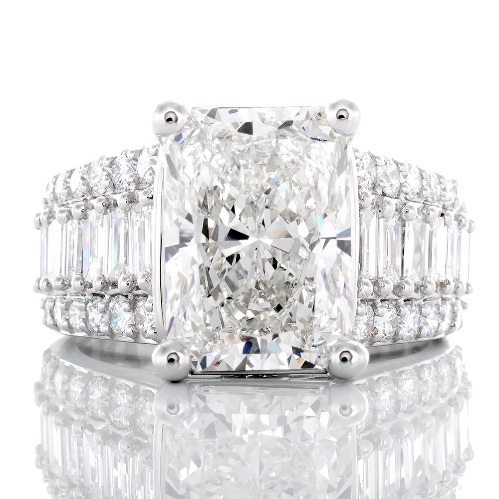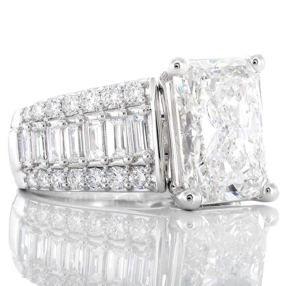 - Lab Created Radiant Cut Diamond Center: 4.98ct
