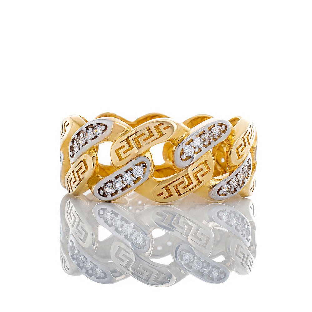 Alternating Greek Key & CZ Miami Cuban Eternity Band
