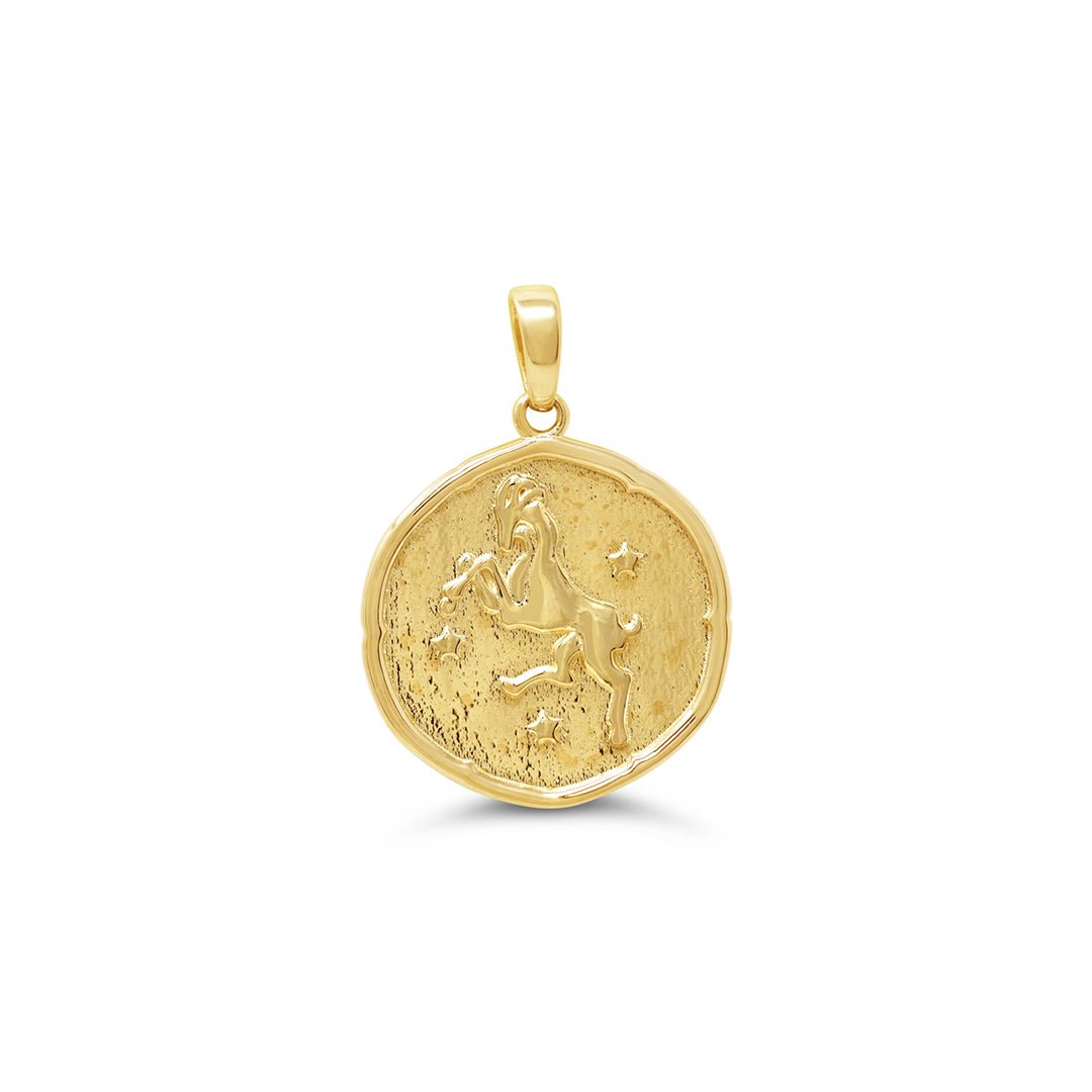 Aries Round Yellow Gold Zodiac Pendant