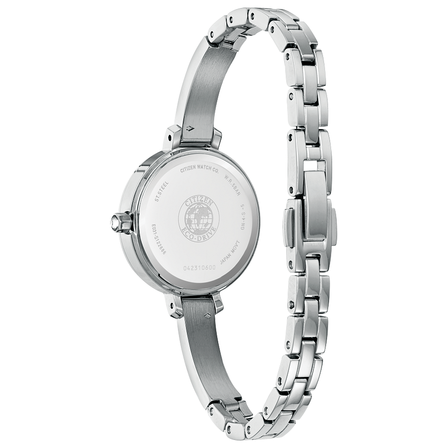 The elegant Silhouette Crystal from CITIZEN® is a timepiece designed for the modern woman. The stainless steel case and bracelet feature crystals. The Mother-of-Pearl dial is also accented by elegant crystals. The bangle design allows it to be worn alone, or stacked with multiple bracelets to create unique looks for every occasion. Powered by light with Eco-Drive technology, it is always ready for a night out on the town.