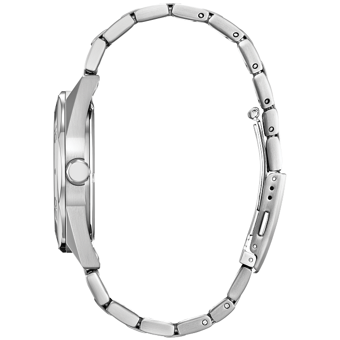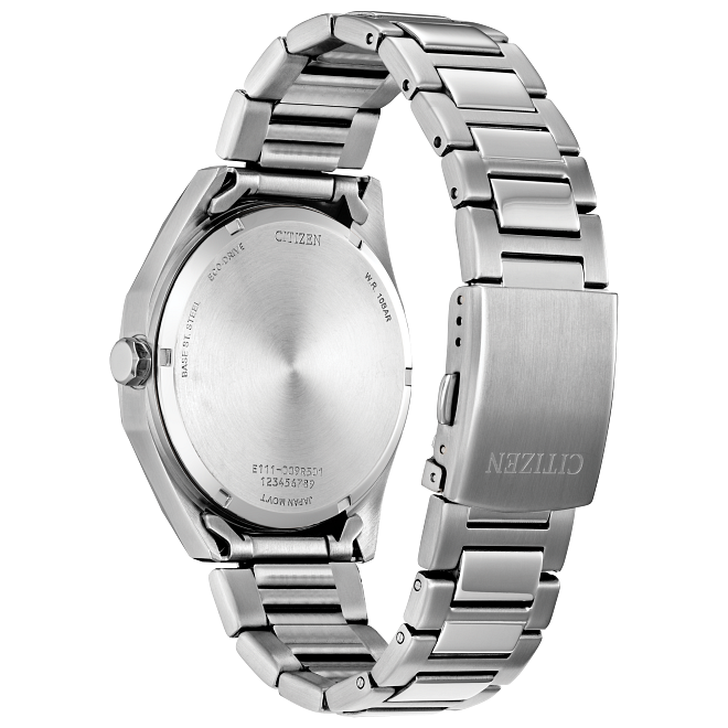 Confidently go from work to play with the new Odyn. Featuring a silver-tone stainless steel case measuring 41mm in diameter, the sports-focused timepiece makes use of sharp lines and contrasting styling to make a statement on the wrist. A faceted 60-minute bezel, H-link bracelet, and 100m water resistance ensure all-purpose wear. On the dial, a textured blue display is presented, with applied indices in bright white alongside a 3 o’clock date window providing high legibility and daily utility. Featuring Citizen’s Eco-Drive technology, sustainably powered by any light and never needs a battery. Calibre number E111.