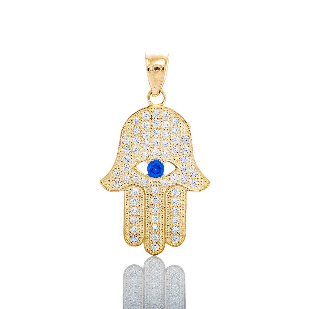 Hamsa Hand with Blue Sapphire Evil Eye 10k Gold