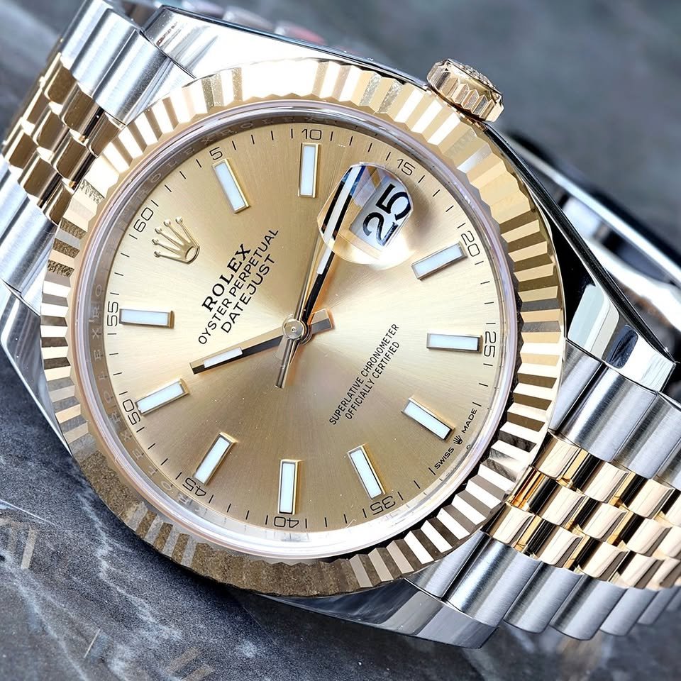 Rolex Datejust 41 Champagne Dial Steel/18K Yellow Gold Fluted Bezel Jubilee Bracelet Watch Like New