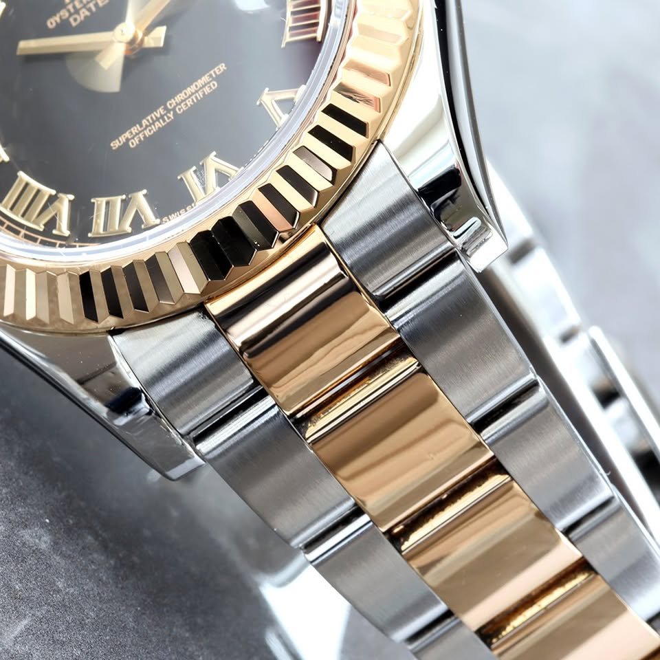 Rolex Datejust II 41MM Black Roman Dial 18K Fluted Bezel Steel/18k Oyster Bracelet Watch