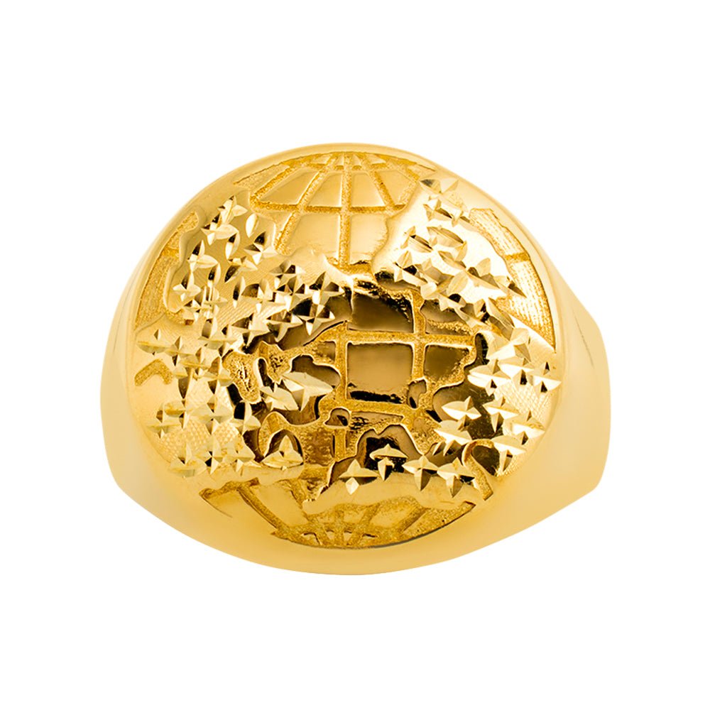 Round Globe / World Diamond Cut with High Polished Shoulders Ring