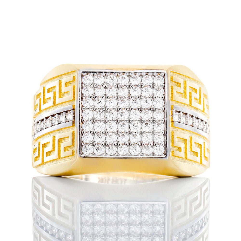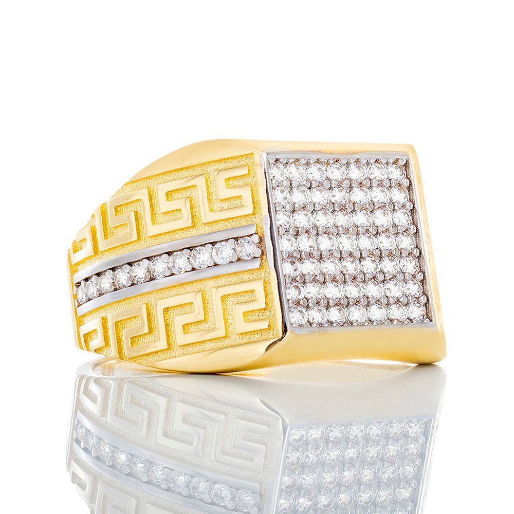Square Cubic Ring W/ Greek Key Shoulders