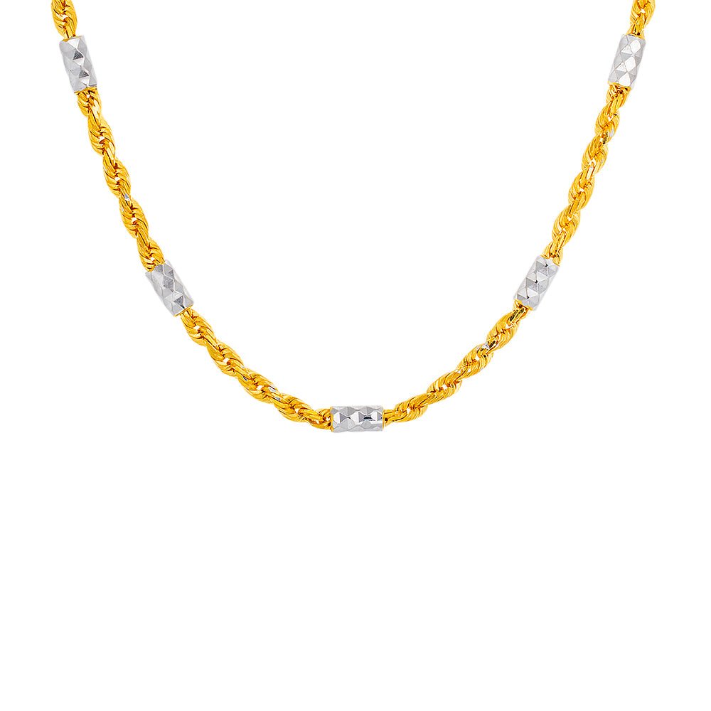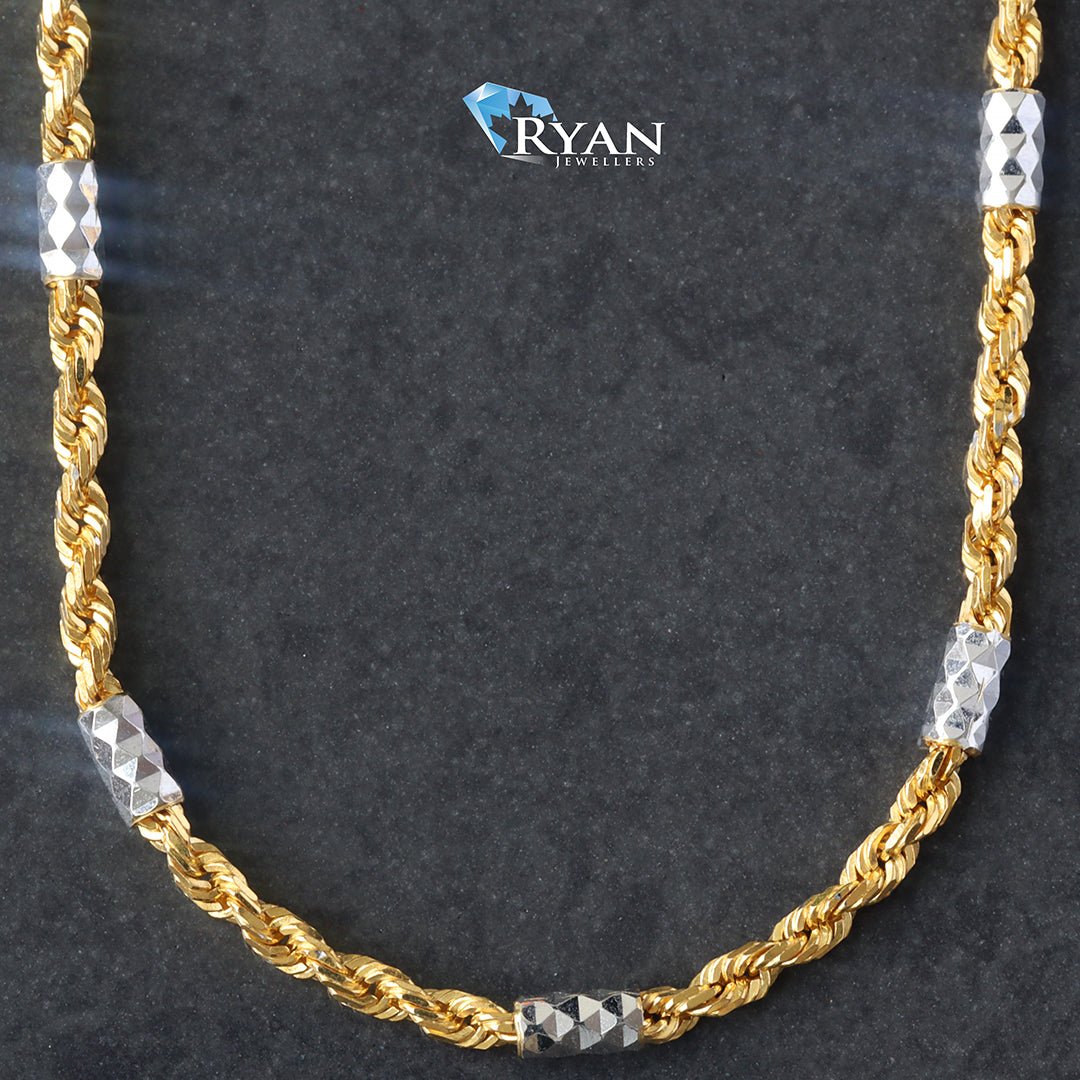 Two Tone Diamond Cut Fancy Tubetto On Solid Rope Chain