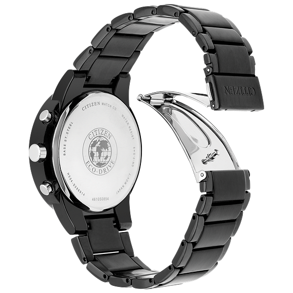 Axiom’s refined yet sleek design offers a day-to-night fashion option for the trendsetter. This sharp chronograph is featured in black ion plated stainless steel with a black dial and stainless steel accents and the intriguing feature of edge-to-edge glass.